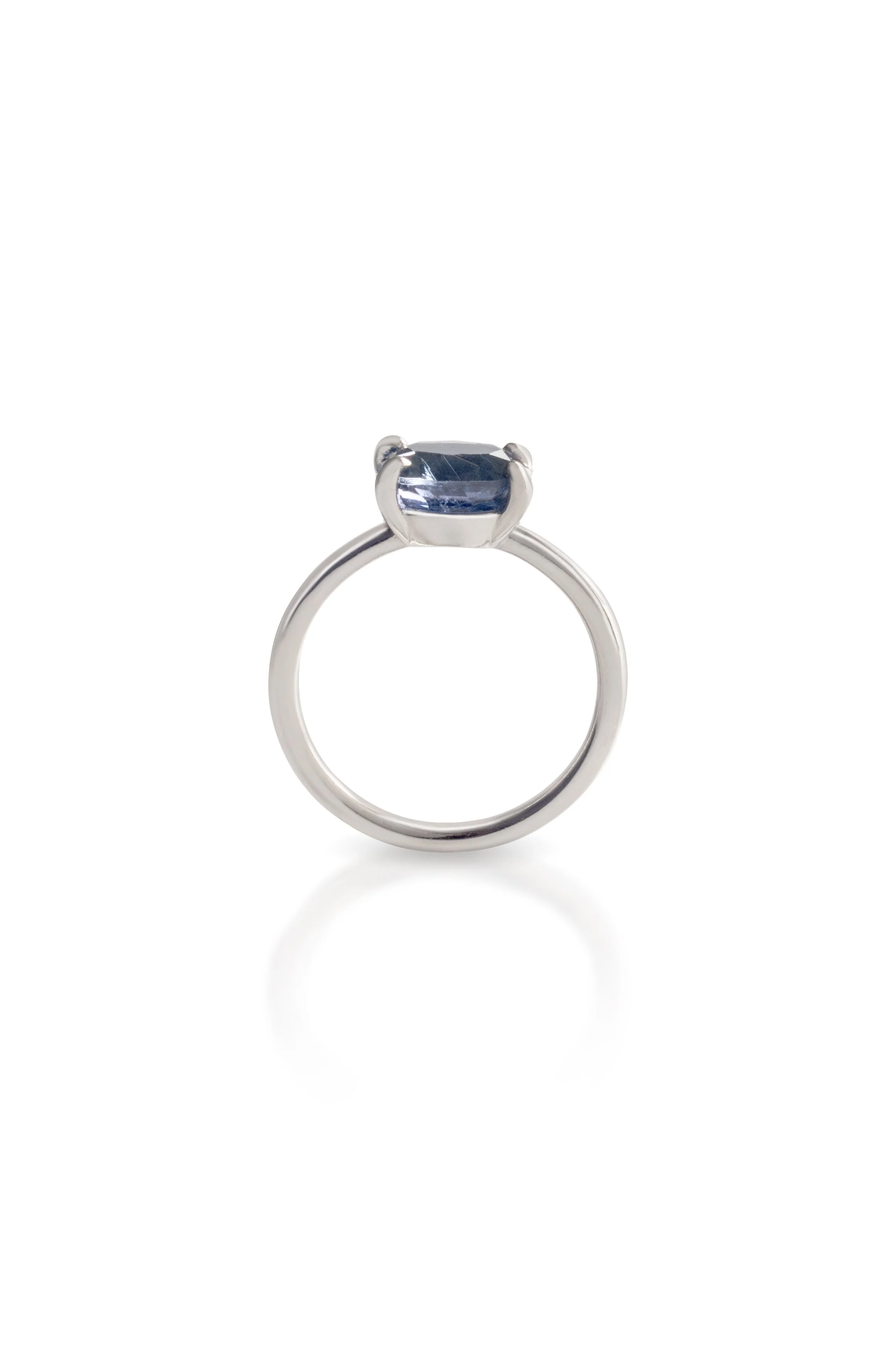 Colour Change Sapphire RingNatural, untreated, colour change sapphire ring; in handmade heavy claws; in platinum. View fullsize