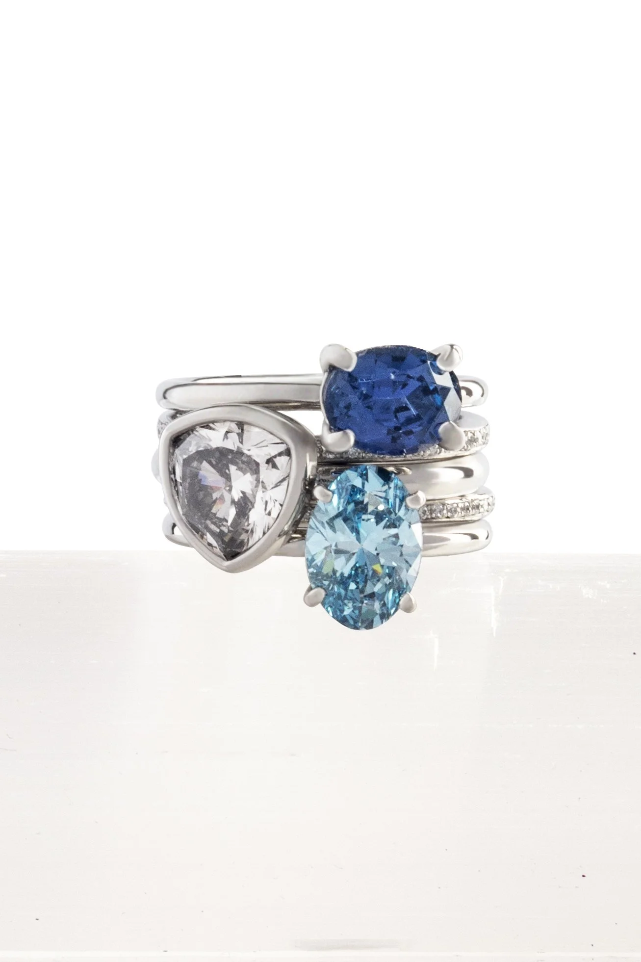 Sexy Stack contains the above three rings plus two diamond set platinum eternity bands.