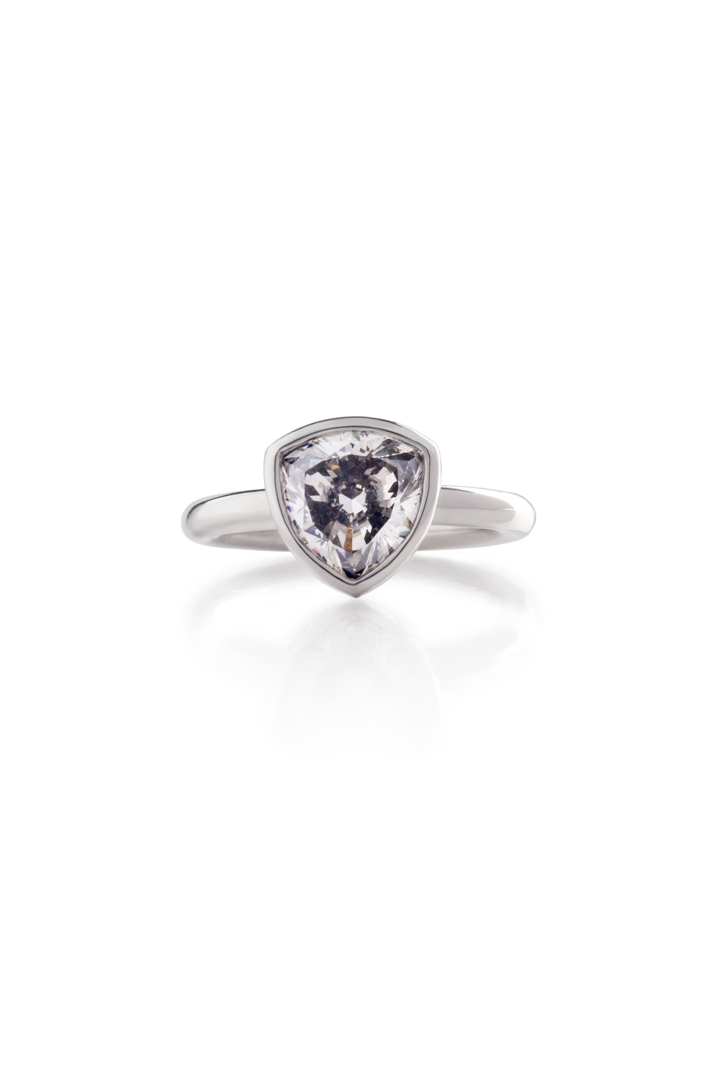 Synthetic Grey Diamond RingFancy grey colour, synthetic diamond ring; bezel set in platinum. View fullsize